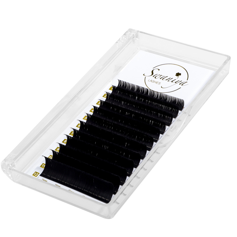 Le estensioni delle ciglia classiche Swaniya presentano un colore nero opaco senza tinta blu, che li rende perfetti per la creazione di set di ciglia classiche. Il colore nero intenso aiuta ad accentuare la bellezza naturale degli occhi, rendendoli più grandi, più luminosi e più allettanti.
